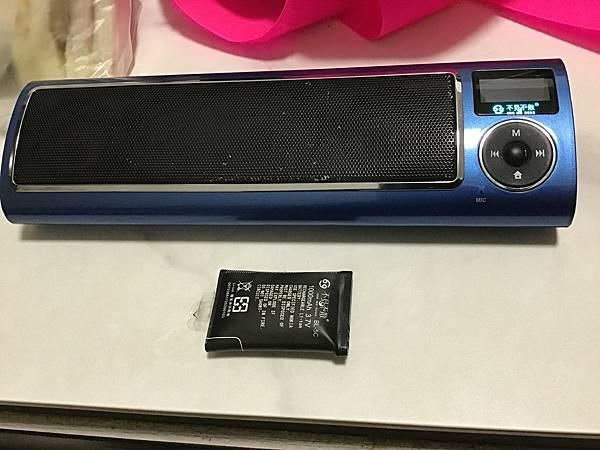 這款不見不散mp3音響 , 因電池膨脹不能使用了 , 丟掉又太可惜了 , 原本是Bl-5c容量是1000mah , 我把它改成18650鋰鐵電池兩顆多了四倍的電量
